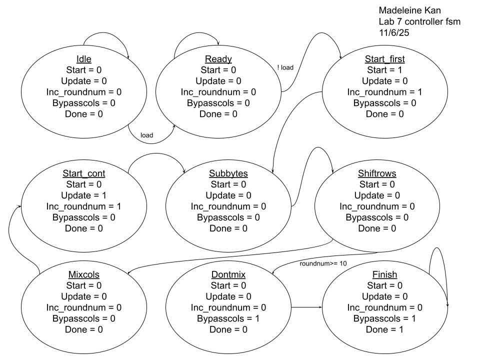 aes_controller_fsm controller(clk, load, roundnum, start, update, bypasscols, done, inc_roundnum);