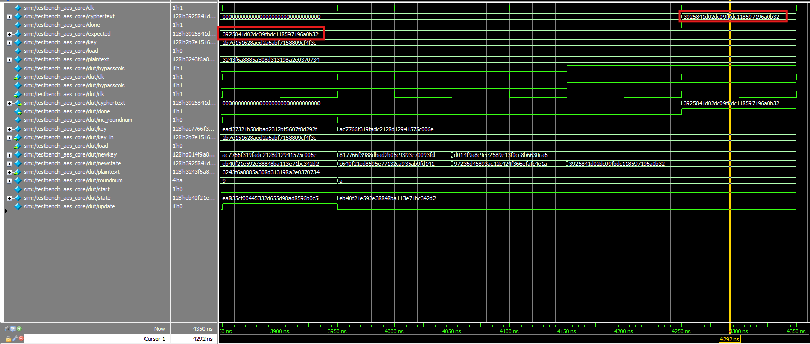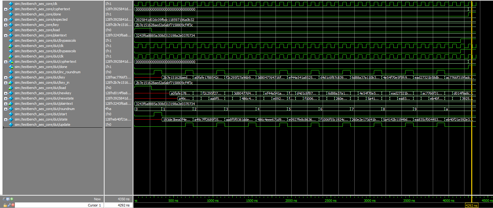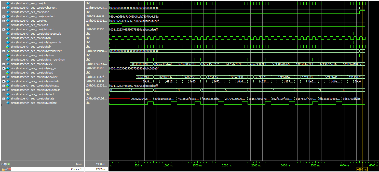 aes_core core(clk, load, key, plaintext, done, cyphertext);