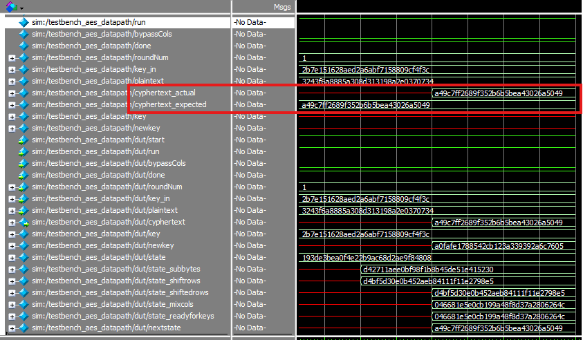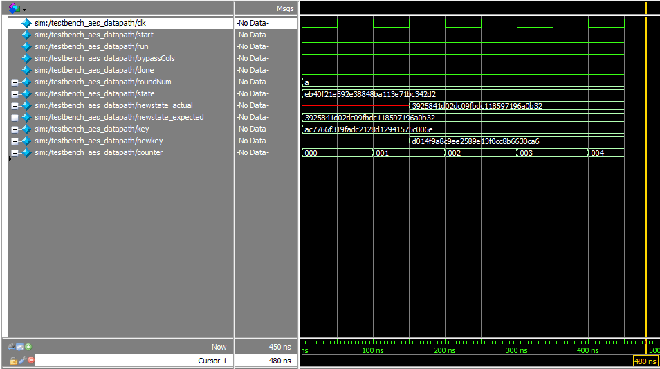 aes_datapath dp(clk, bypasscols, done, roundnum, state, key, newstate, newkey);